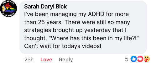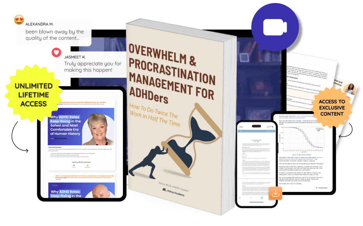 Includes everything from the “Summit VIP Pass”, Procrastination Management for ADHDers Ebook: